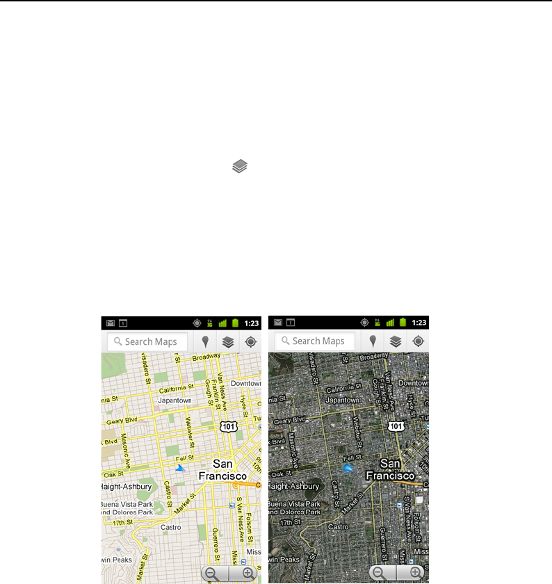 Initially, Google Maps opens with a street map. Enable Layers to view satellite or