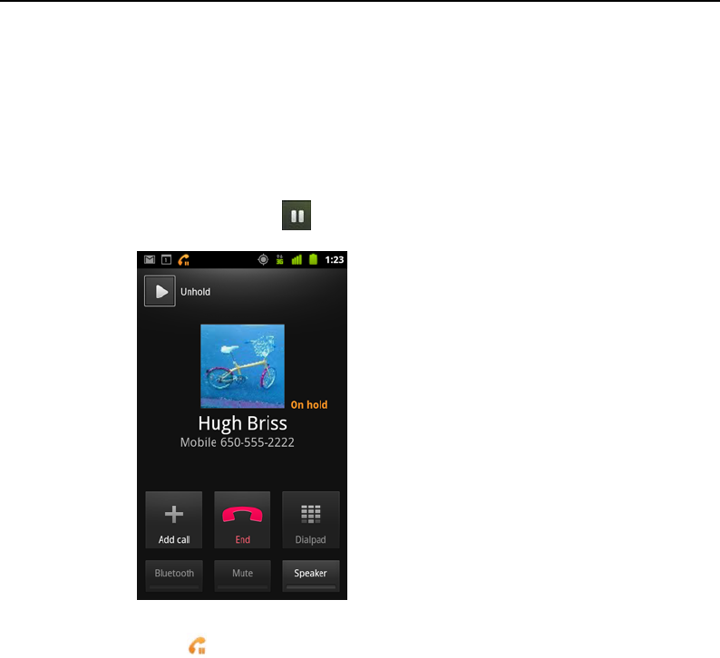 A Hold icon appears in the Status bar to remind you that you have a call on