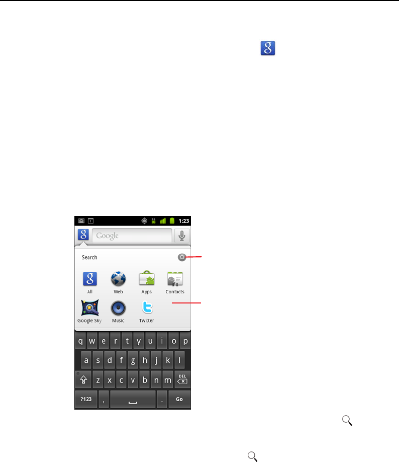 Initially, the Google search box displays the All icon , indicating that it’s configured