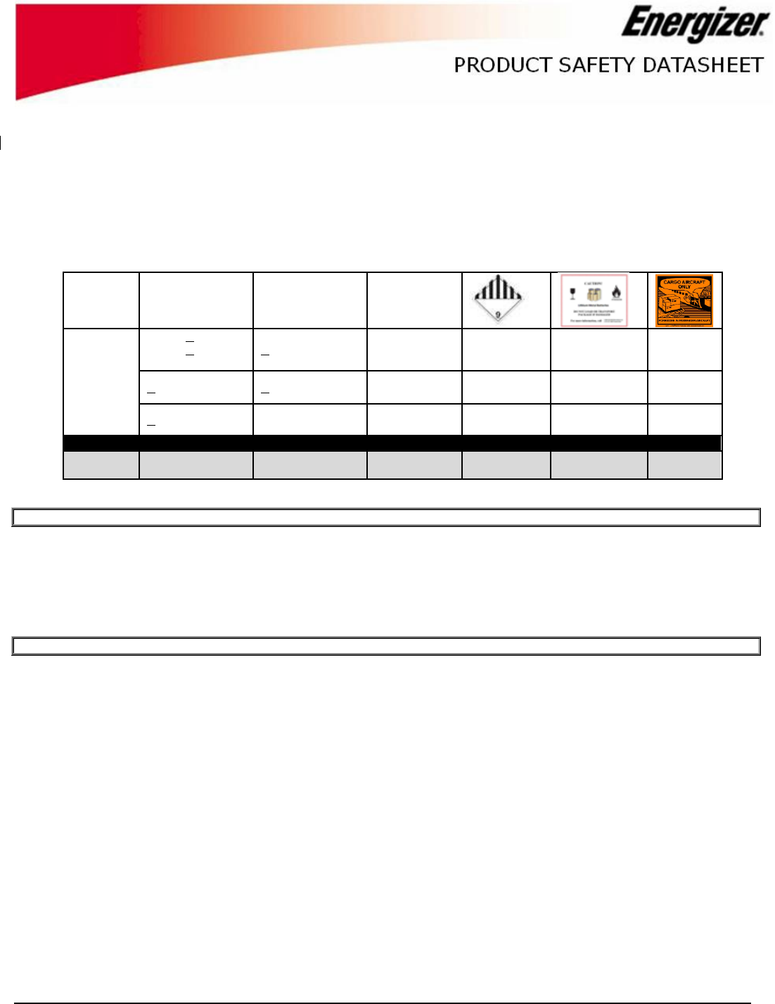 Outside of the transportation requirements noted in Section 14, lithium manganese dioxide batteries marketed by Energizer Battery Manufacturing, Inc.