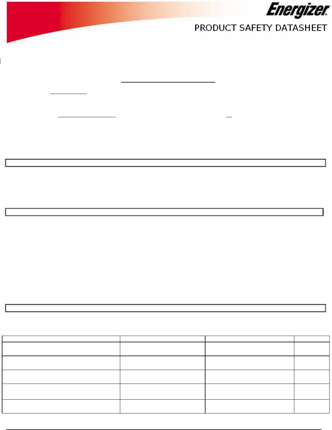 Energizer has prepared copyrighted Product Safety Datasheets to provide information on the different Eveready/Energizer battery systems. Batteries are