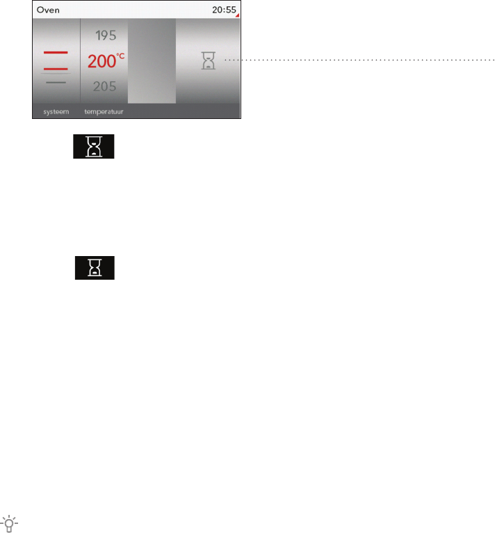 Op deze wijze wordt ingesteld hoelang de oven zal werken (duur) en