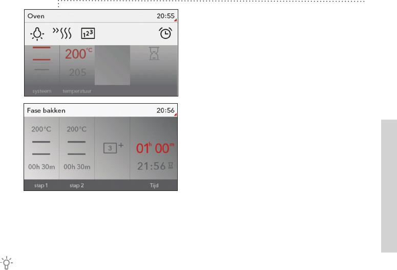 Door een druk op de toets START zal de oven beginnen te werken na stap 1 (de gekozen