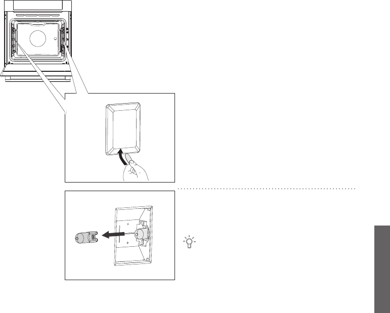 bakschaal, het rooster en de geleiders verwijderd te worden.
