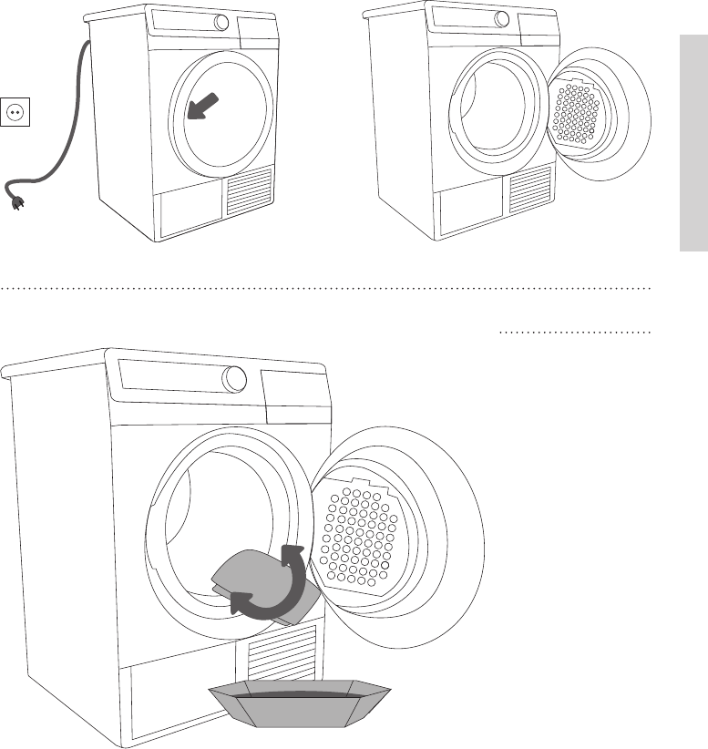 Öffnen Sie die Tür des ausgeschalteten Trockners durch Drücken der Tür auf der linken