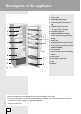 Description of the appliance 1 Interior light 2 Shelf (adjustable height) 3 Telescopic guide shelf (max. 12 4 Foldable egg rack (closed kg) - six eggs, open - 12 eggs) 5 Vegetable crisp pan* 6 ZERO’N’FRESH food storage drawer with pull-out guides (may. 20 kg)* 7 Bottle rack* 8 Refrigerator door tray (max.