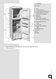 Description of the appliance A Refrigerator B Freezer 1 Fan* 2 Interior illumination 3 Fridge shelf (adjustable height) 4 Foldable egg tray (closed - 6 5 Crisp pan 6 Bottle rack* eggs, opened - 12 eggs) 7 Door lining shelf (options: deep, shallow; lid or without lid) 8 Bottle carrier with safety 9 Tube holder* holder* 10 Freezer shelf (adjustable height) 11 Freezer door shelf 12 Ice tray 13 Leg 14 Wheel* 149809 • Interior accessories of the appliance may vary according to the model.