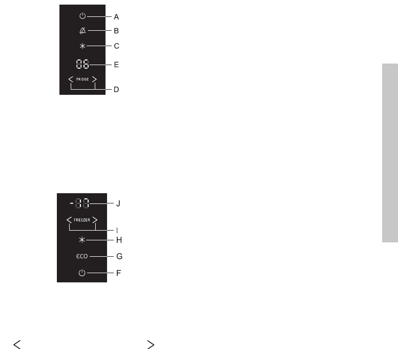 • Stellen Sie die Temperatur im Kühlteil mit der Taste D ein.