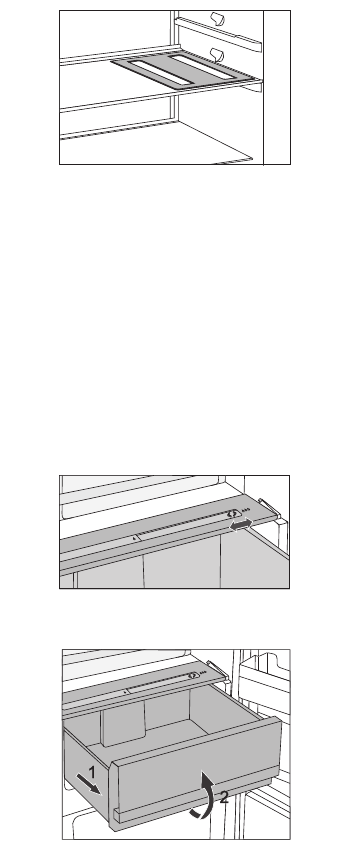 • Der Behälter am Geräteboden unter der Glasablage ist zum Lagern von Obst und