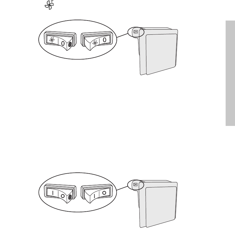 Wenn der Ventilator und Ionisator eingeschaltet sind, ist auf dem Schalter ein roter Punkt