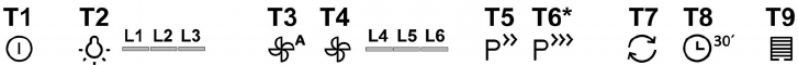 Med påslått skjerm (ON) og avslått vifte (OFF), skal man holde knappene T8 og T9 inntrykt samtidig i mer enn 3