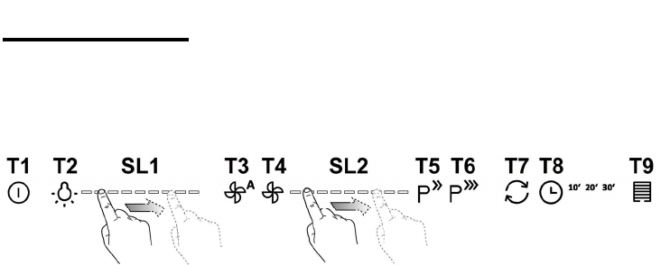T8. ON/OFF Senere slukning hastighed (styrke) udsugning.