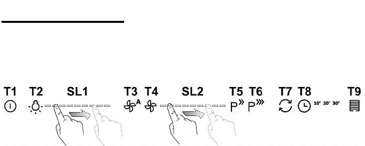 - ışığın yoğunluğunu arttırmak veya azaltmak için, ışıklar açıkken parmaklarınızı SL1 led bantının üzerinde sağa veya