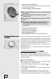 Failure Possible cause Excessive foaming during Excessive measure of washing. detergent. FAILURE 7 Water is poorly pumped out or not at all (machine reports failure - the LEDs periodically flash seven times). Check if: • the filter is clean, • outlet pipe is not jammed, • the drain is clogged, • outlet pipe is positioned higher than 1m. Push START again The machine operates normally. Wash large and small pieces of laundry together. The machine switched on the UKS function.