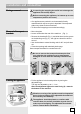 Washing procedure • • • • • • • Open the door of the machine Load the laundry into the drum Close the door Open the water inlet faucet Push the ON/OFF button and select the program Add washing and treatment agents (detergent and softener) Start the operation by pushing the START knob (C) - Open the door of the machine. Door is opened by pulling the handle (lever) on the right hand side of the door towards you. - Sort the laundry by the type of fabrics.