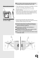 Do not immerse the Aqua-stop system inlet pipe into the water, because it contains the electric valve! Water outlet connection • Fix the outlet hose to run into the sink or the bathtub, or connect it directly to the wall drain outlet (diameter min. 4 cm). • Wall drain must be installed properly and must enable occasional cleaning. • Fasten the outlet hose support with a piece of rope led through the hose elbow, to prevent the hose from slipping to the floor.