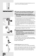 Do not immerse the Aqua-stop system inlet pipe into the water, because it contains the electric valve! Water outlet connection • Fix the outlet hose to run into the sink or the bathtub, or connect it directly to the wall drain outlet (diameter min. 4 cm). • Wall drain must be installed properly and must enable occasional cleaning. • Fasten the outlet hose support with a piece of rope led through the hose elbow, to prevent the hose from slipping to the floor.