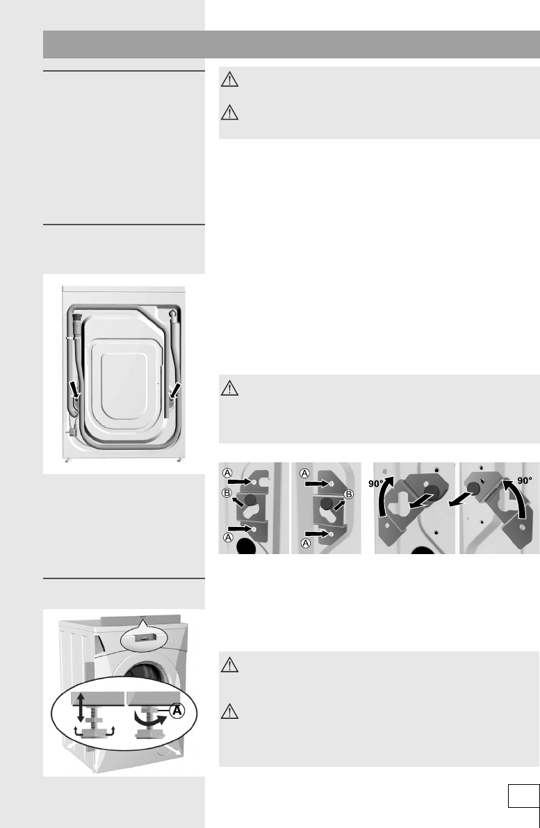 • Loosen screws A at the rear of the machine (Fig. 1).
