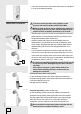 Water outlet connection • Fix the outlet hose to run into the sink or the bathtub, or connect it directly to the wall drain outlet (diameter min. 4 cm). • Wall drain must be installed properly and must enable occasional cleaning. • Fasten the outlet hose support with a piece of rope led through the hose elbow, to prevent the hose from slipping to the floor. The end of outlet hose should be placed between minimum 60 cm and maximum 100 cm above the floor level.