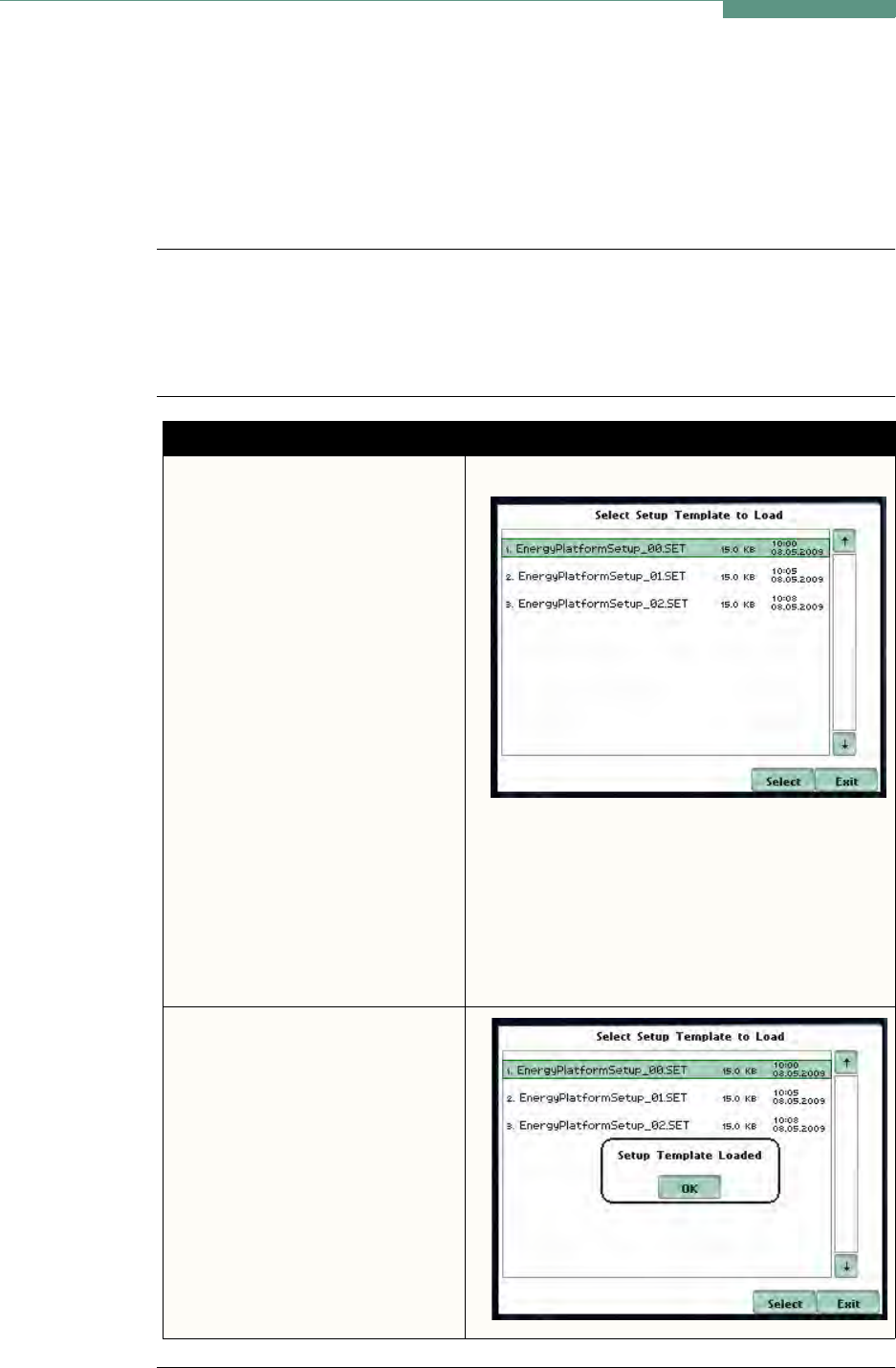 The Energy Platform enables users to load saved setup template files (.set) from the