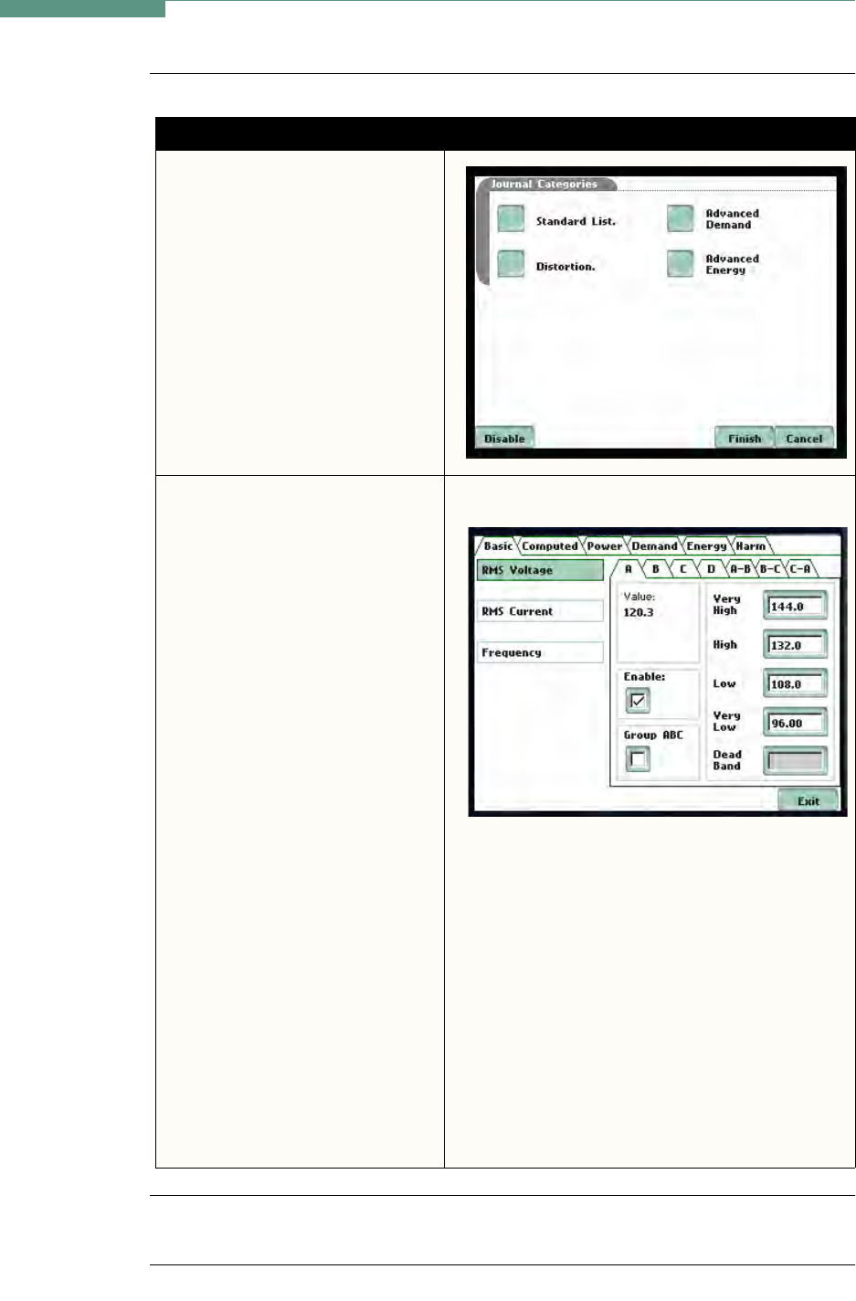 Dead Band) to display the