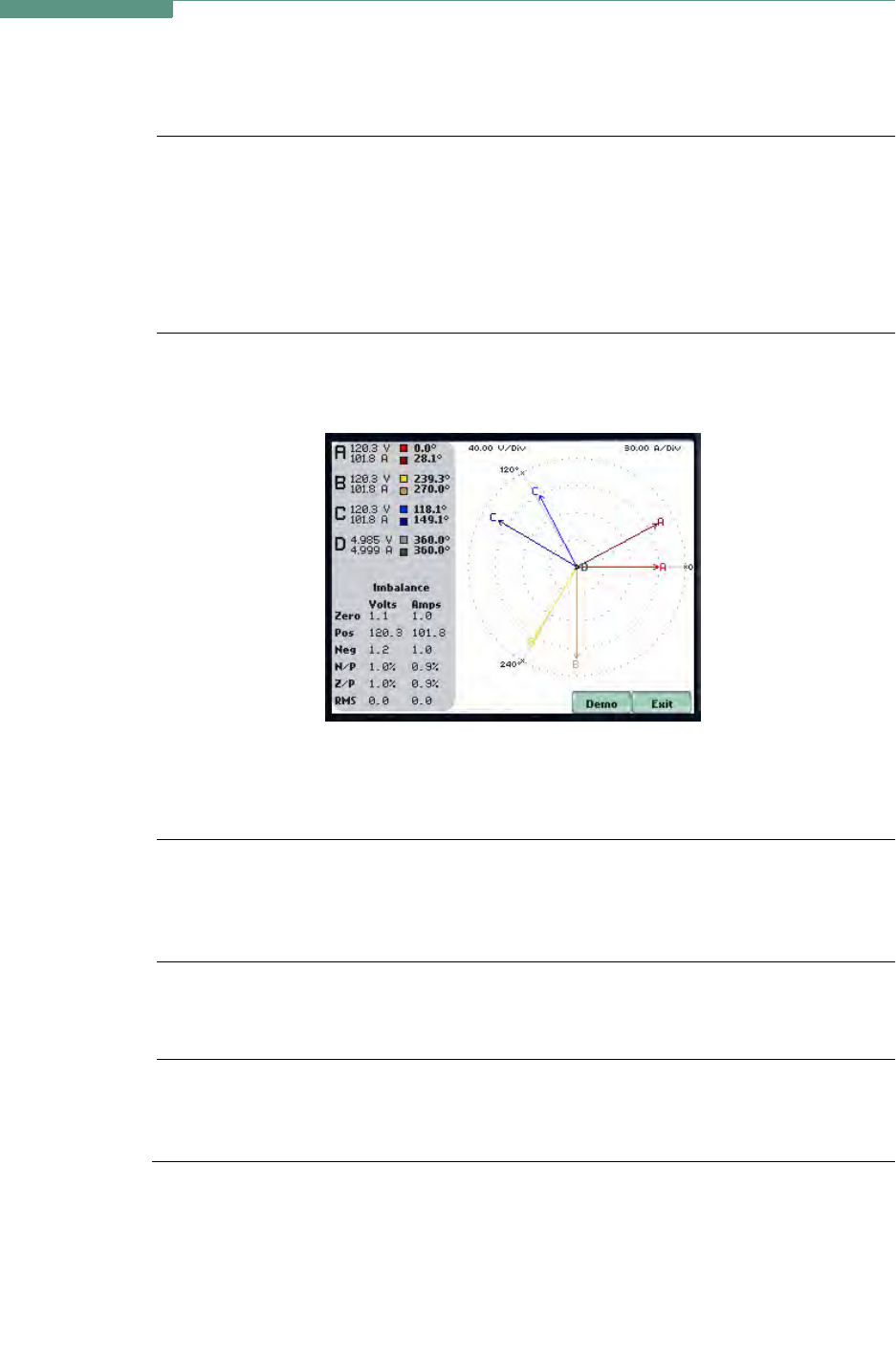 Split phase vectors are displayed as dual lines showing channel references and