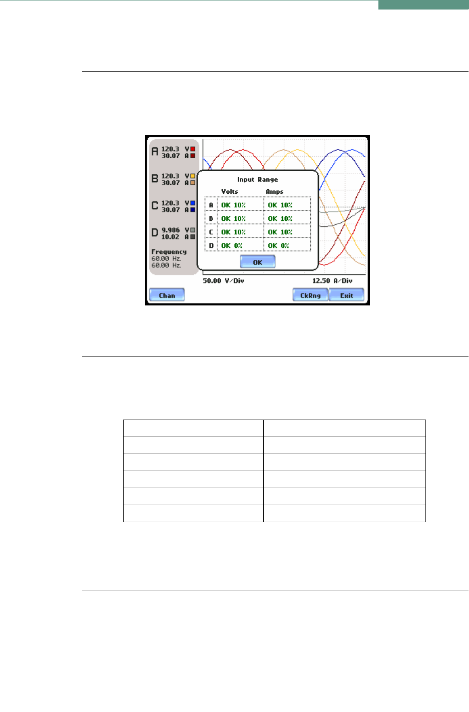 The Input Range screen is displayed by pressing the CkRng key on the Scope mode