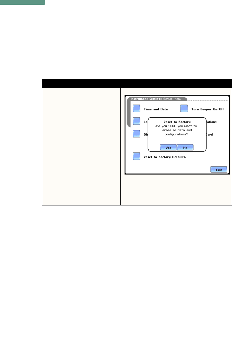 if you want to reset the instrument