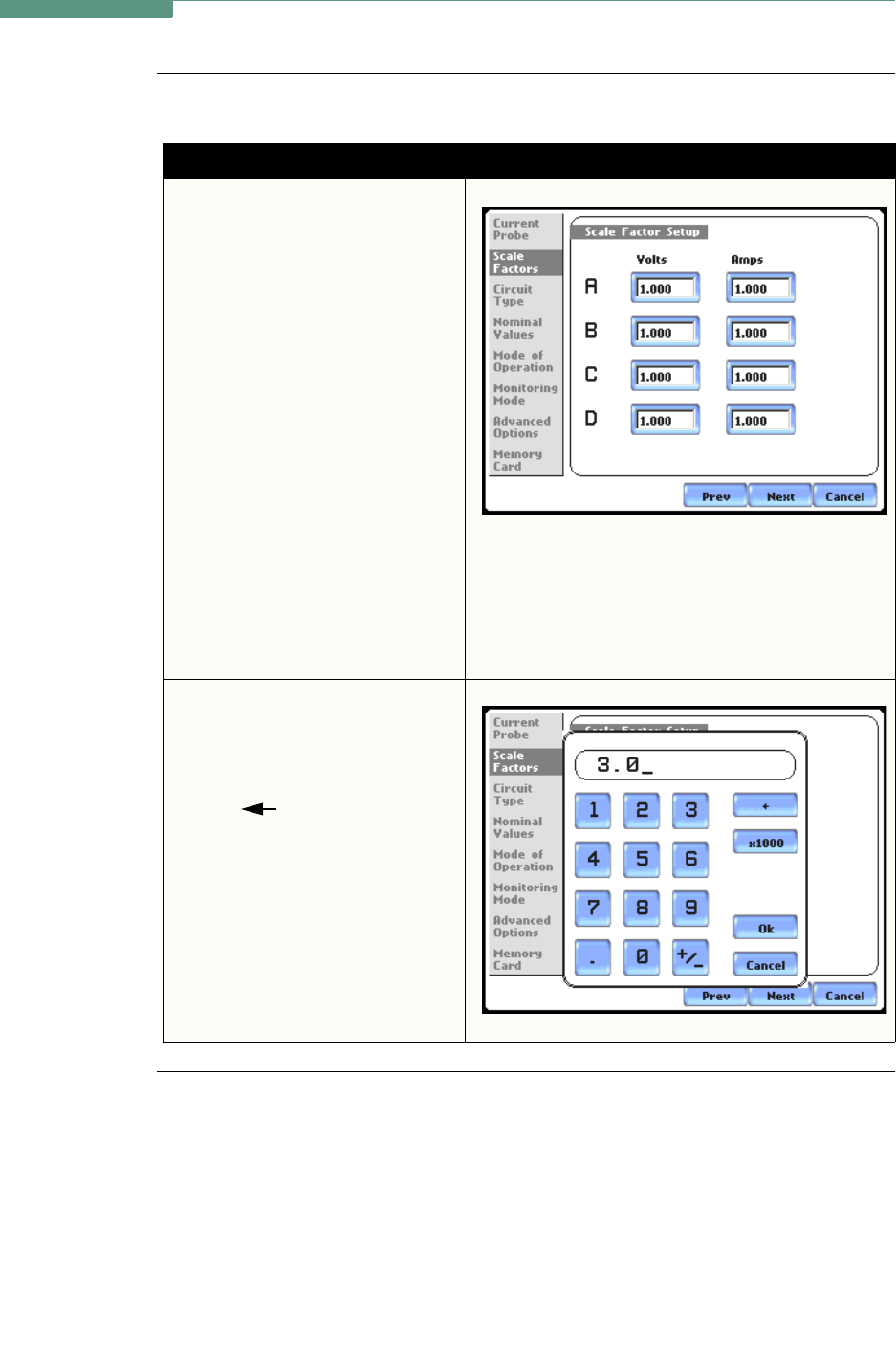 After setting up current probe configurations, the Scale Factor screen is displayed.