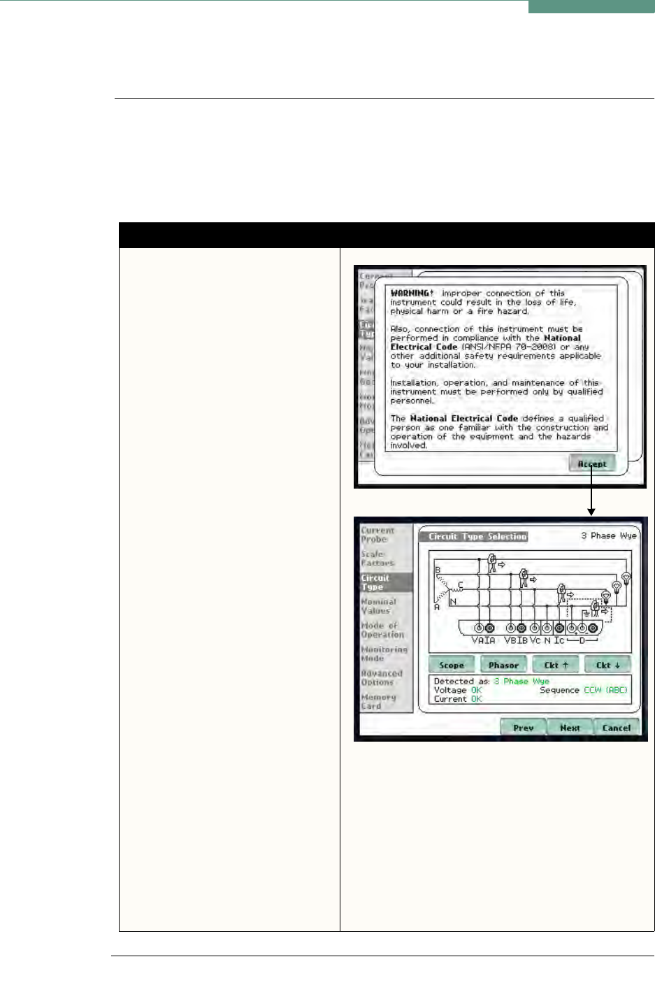 circuit type appropriate to their application. The instrument will display the detected
