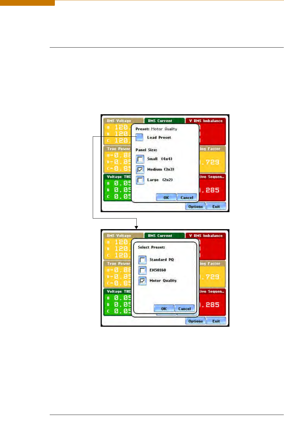 Press Options to select the Preset parameters and/or Panel Size to display.