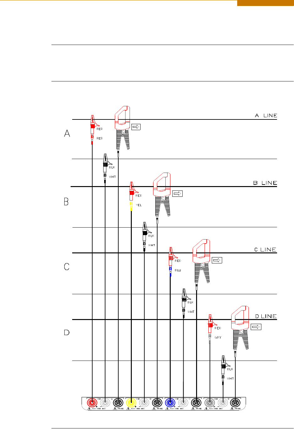 as differential inputs. Current probes are connected to channels A, B, C, and D.