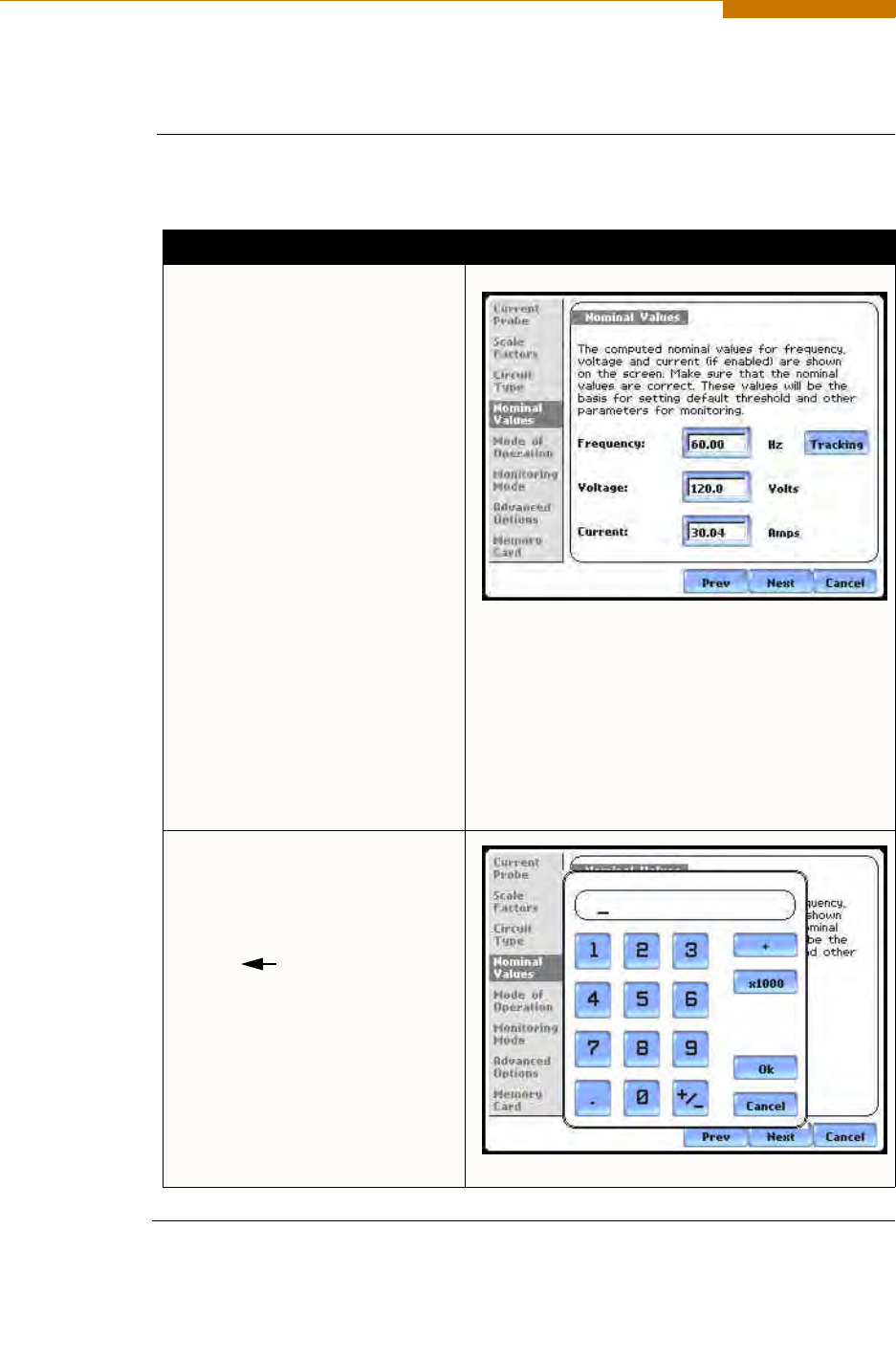 The Nominal Values screen allows users to enter values for frequency nominal line