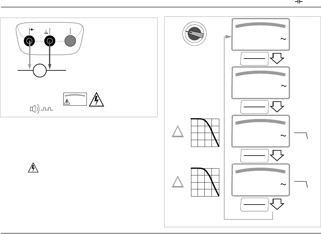 Bei U > 55 V AC oder U > 70 V DC wird ein Gefahrensymbol ein-
