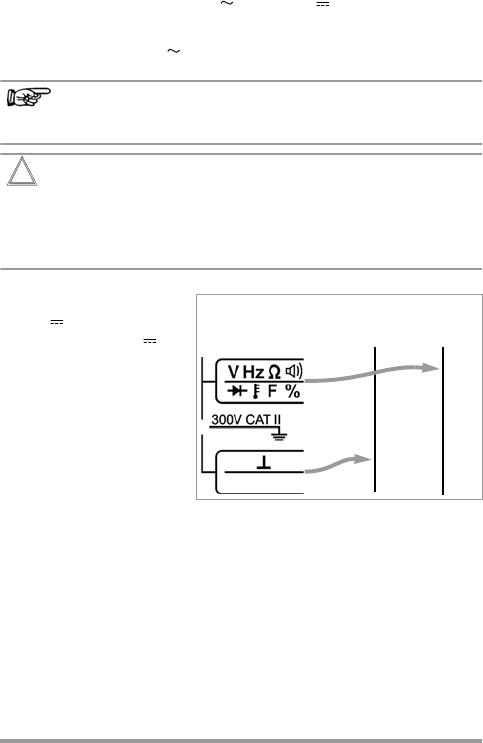 ➭ Set the rotary switch to either V (TRMS) or V , depending upon the