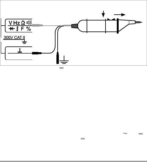 ➭ Select “V DC” measurement with probe by repeatedly pressing the FUNC