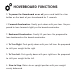 HOVERBOARD FUNCTIONS 1. To power the Hoverboard on or off, press and hold the silver button on the back of your hoverboard for 3 seconds. 2. Forward Acceleration: Gently push down with your toes. Be prepared to lean forward slightly as the board accelerates. 3. Backward Acceleration: Gently lift your toes. Be prepared to lean backward as the board accelerates. 4. To Turn Right: Push gently down with your left toes. Be prepared to shift your weight to the right. 5.