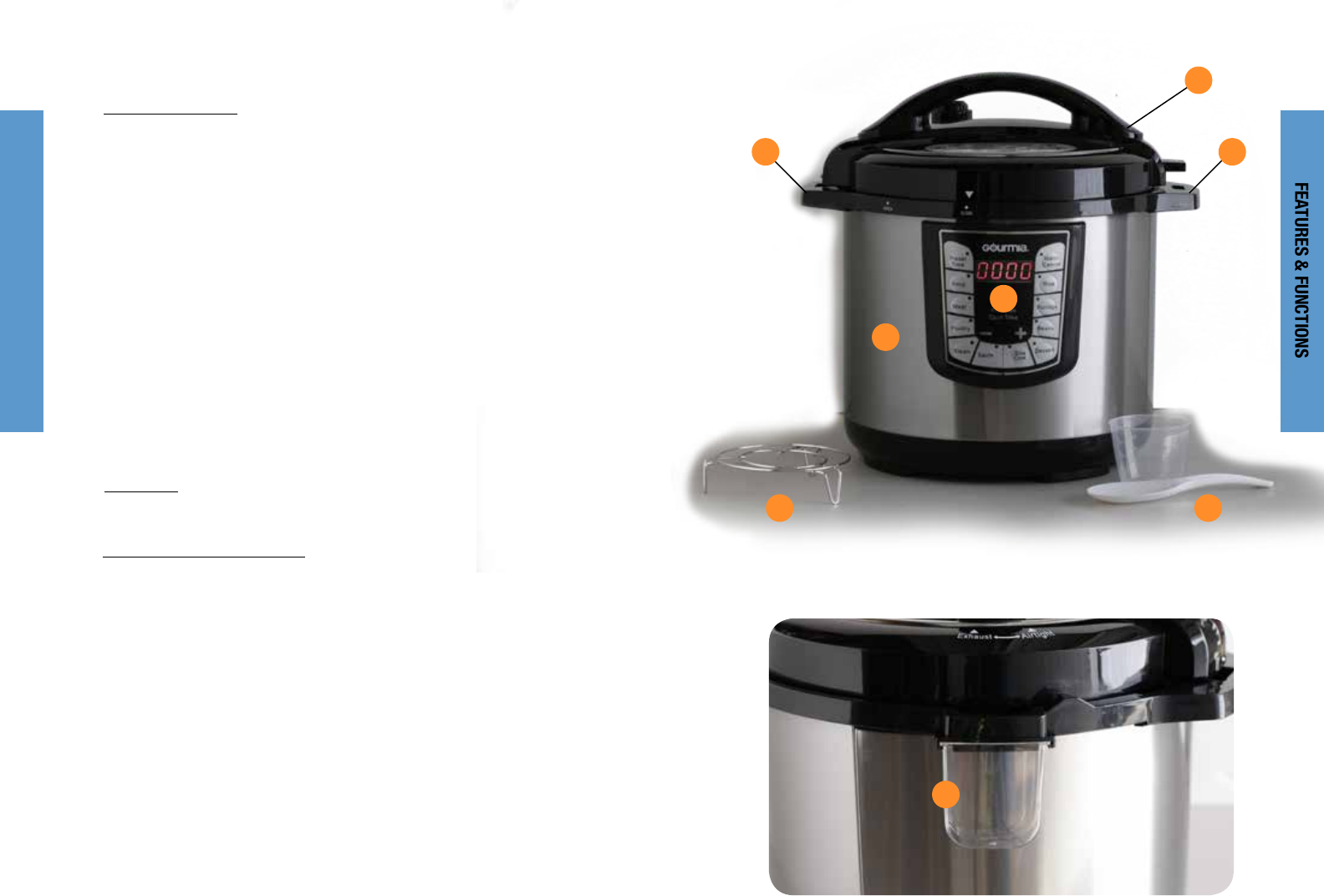 1. Pressure Cooker EasyGrip Handles. Use the handles when transferring the