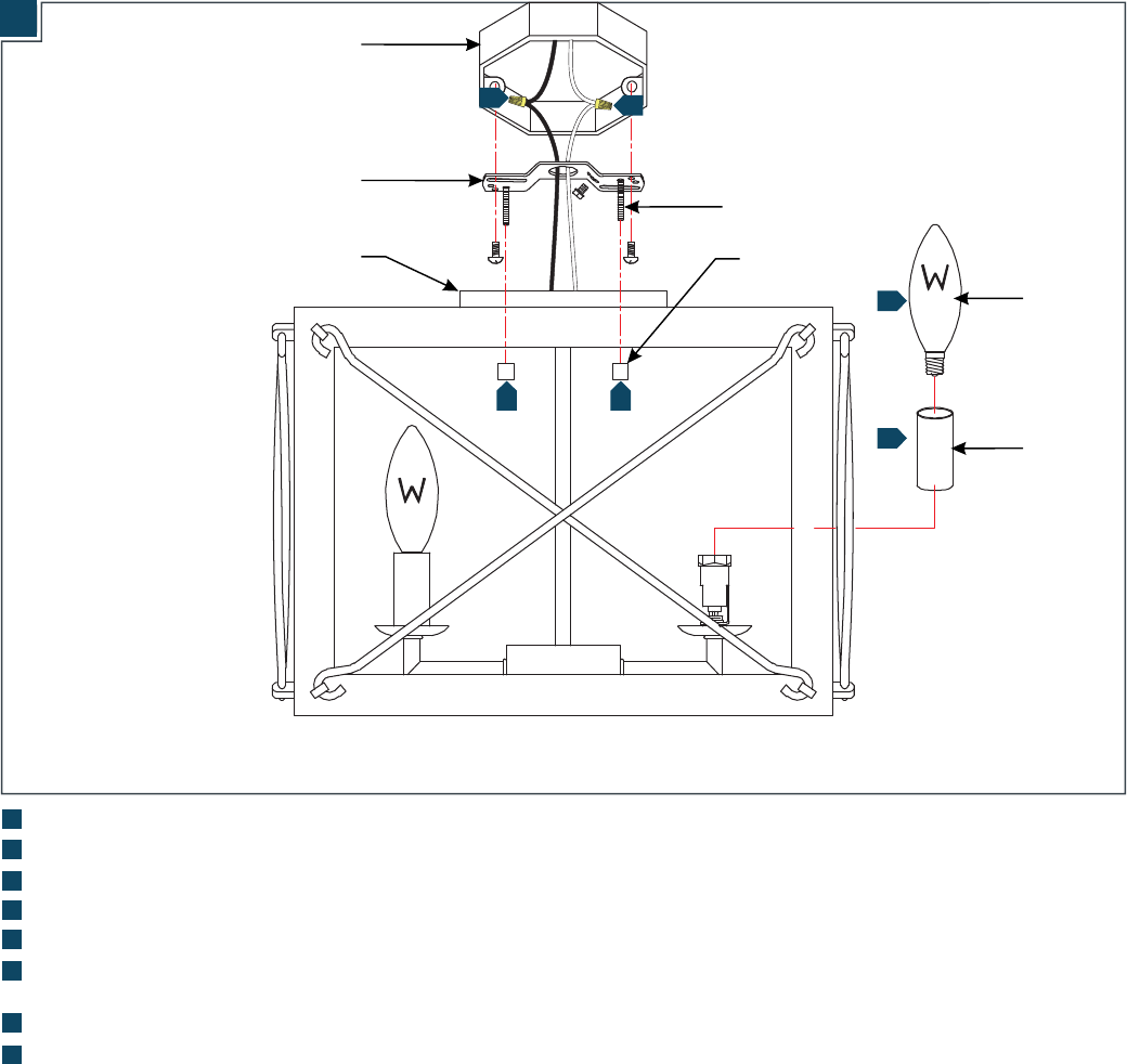 Screw the lamps into the sockets. Refer to the label on the socket for Max Wattage Information.