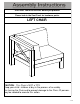 Before Beginning Assembly: Read instructions, cover to cover. Have 2 adults on hand for assembly. Do not assemble on flooring or carpet. Assemble on a clean non-marring surface (packing foam). Save all packaging until finished. OVERVIEW Backrest Panel (A) Back Cushion (H) Seat Cushion (F) Left Arm Panel (C) Right Arm Panel (B) Support Bar (E) Seat Panel (D) Left Back Cushion (G) FRONT FACING This Left Chair has multiple parts and may require up to 30 minutes to assemble.