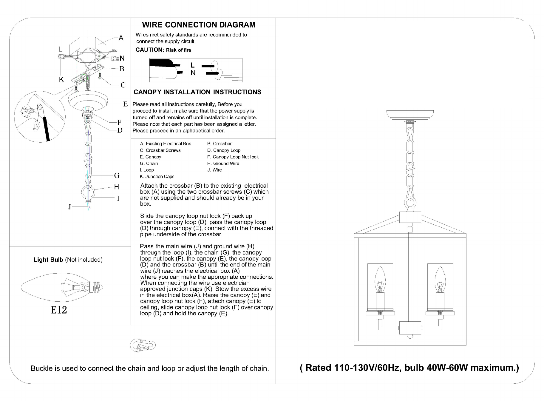Assembly and Installation Steps Please note: The parts in this table are completely unembarrassed T illustrative purpose. In the actual production that you receive, some parts arg assembled and attached together. N Step 5 1. Lock the crossbar to the junction box of the ceiling By using 2 pos of 5132 Strews, 2, The hot positive wire is the one which has writing on it. The negative is the one which has 0o writing. 3. Cover the cling canopy and attach the screws o the canopy.