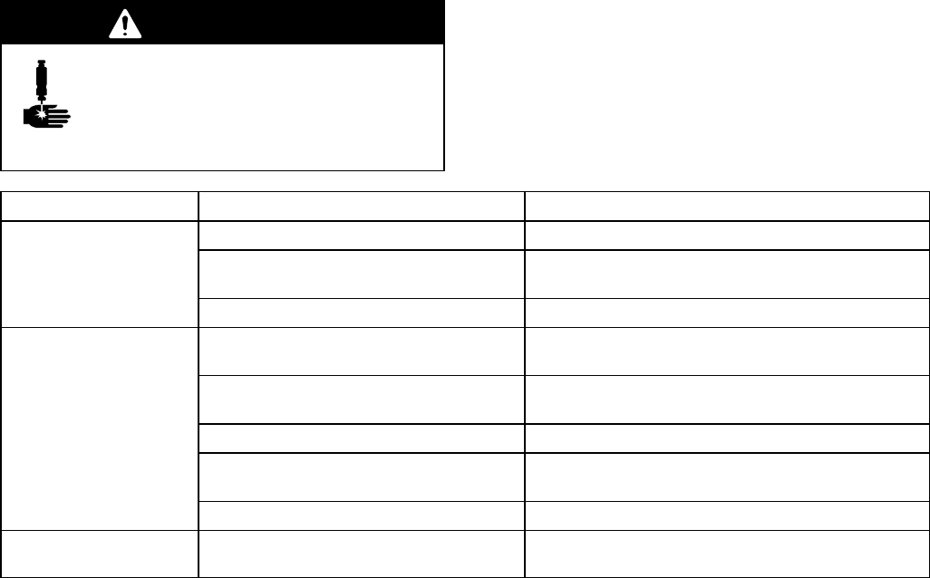Valve does not open Insufficient air pressure Turn on or turn up air pressure.