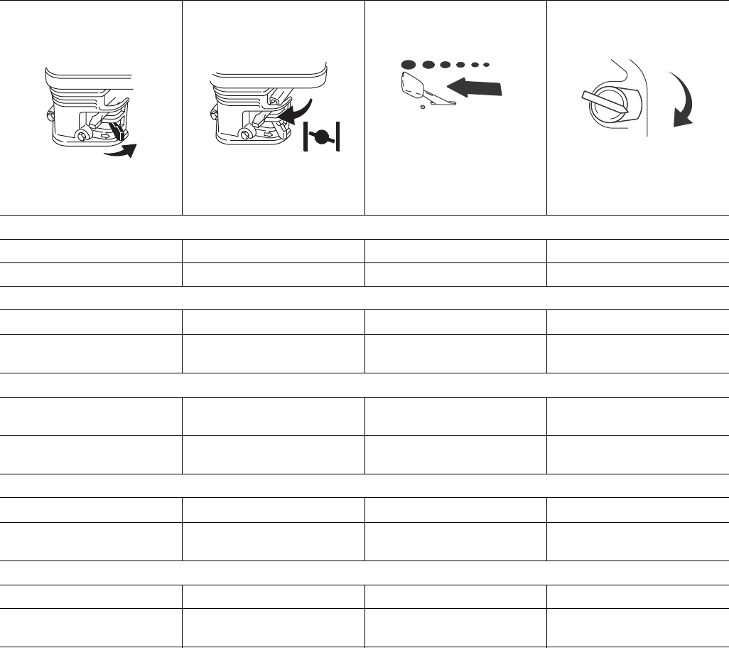A Move fuel valve to open. B Move choke to closed. C Set throttle to fast. D Set engine switch ON.