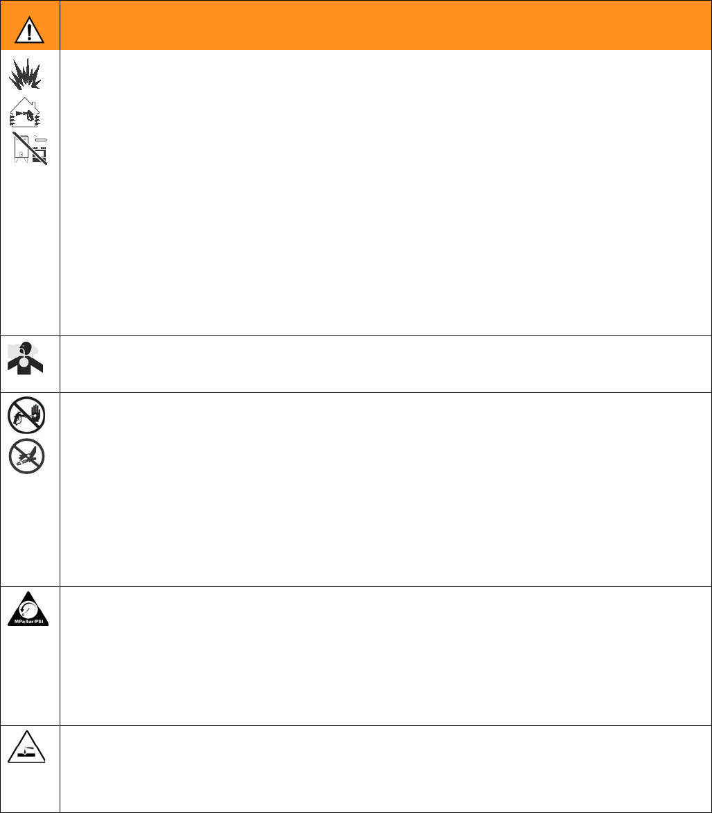 • Suivre la Procédure de décompression de ce manuel à chaque interruption de la pulvérisation et avant le