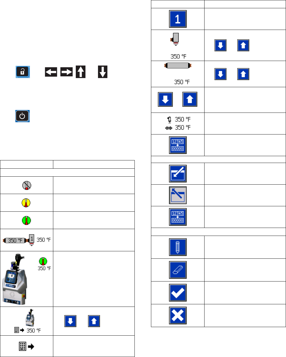 Use to adjust temperature settings