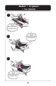 To Recline Seat • Pour incliner le siège • Para reclinar el asiento WARNING When making adjustments to the stroller seat, make sure child’s head, arms, and legs are clear of moving seat parts and stroller frame. MISE EN GARDE Lorsque vous faites des ajustements au siège de la poussette, s'assurer que la tête de l'enfant, les bras, et les jambes soient dégagés des pièces du siège en mouvement et de l'armature de la poussette.
