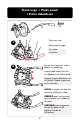 Attaching Seat Pad • Fixer le coussin du siège • Instalación de la almohadilla del asiento 14 Pull harness straps through slots in seat pad. Passez les courroies du harnais dans les fentes du coussin du siège. Pase las correas del arnés a través de las ranuras de la almohadilla del asiento. 15 Pull seat pad over top of back rest. Enfilez la housse du coussin du siège par dessus le dossier. Pase la almohadilla del asiento por arriba del respaldo.
