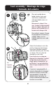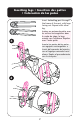 19 20 Secure the seat pad by inserting elastic straps through bottom slots in front of footrest, hooking elastic straps onto the plastic hooks on back of footrest. Fixer le coussin du siège en insérant les courroies élastiques à travers les fentes inférieures de l’avant des repose-pieds, en fixant les courroies élastiques aux crochets situés à l’arrière du repose-pieds.