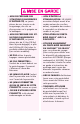Atención y mantenimiento • La ALMOHADILLA REMOVIBLE PARA EL ASIENTO (si así está equipada) se puede lavar con agua fría en el ciclo delicado y secar al aire. NO USAR BLANQUEADOR. • PARA LIMPIAR EL ARMAZÓN DEL COCHECITO, use solamente jabón de uso doméstico y agua tibia. NO USE BLANQUEADOR ni detergente. • DE VEZ EN CUANDO, INSPECCIONE SU COCHECITO para determinar si hay tornillos flojos, piezas gastadas, material o puntos rotos. Cambie o repare las piezas según sea necesario.