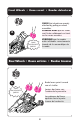 Front Wheels • Roues avant • Ruedas delanteras CHECK that wheels are securely attached by pulling on wheel assemblies. ASSUREZ-VOUS que les roues sont fixées solidement en tirant sur les roues montées. 2X 4 VERIFIQUE que las ruedas estén instaladas correctamente tirando de los ensamblajes de la rueda. SNAP! ENCLENCHEZ! ¡RUIDO! Rear Wheels • Roues arrières • Ruedas traseras 2X 5 Brake levers point toward rear of stroller. SNAP! ENCLENCHEZ! ¡RUIDO! Leviers des freins vers l’arrière de la poussette.
